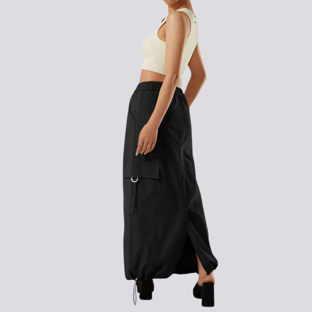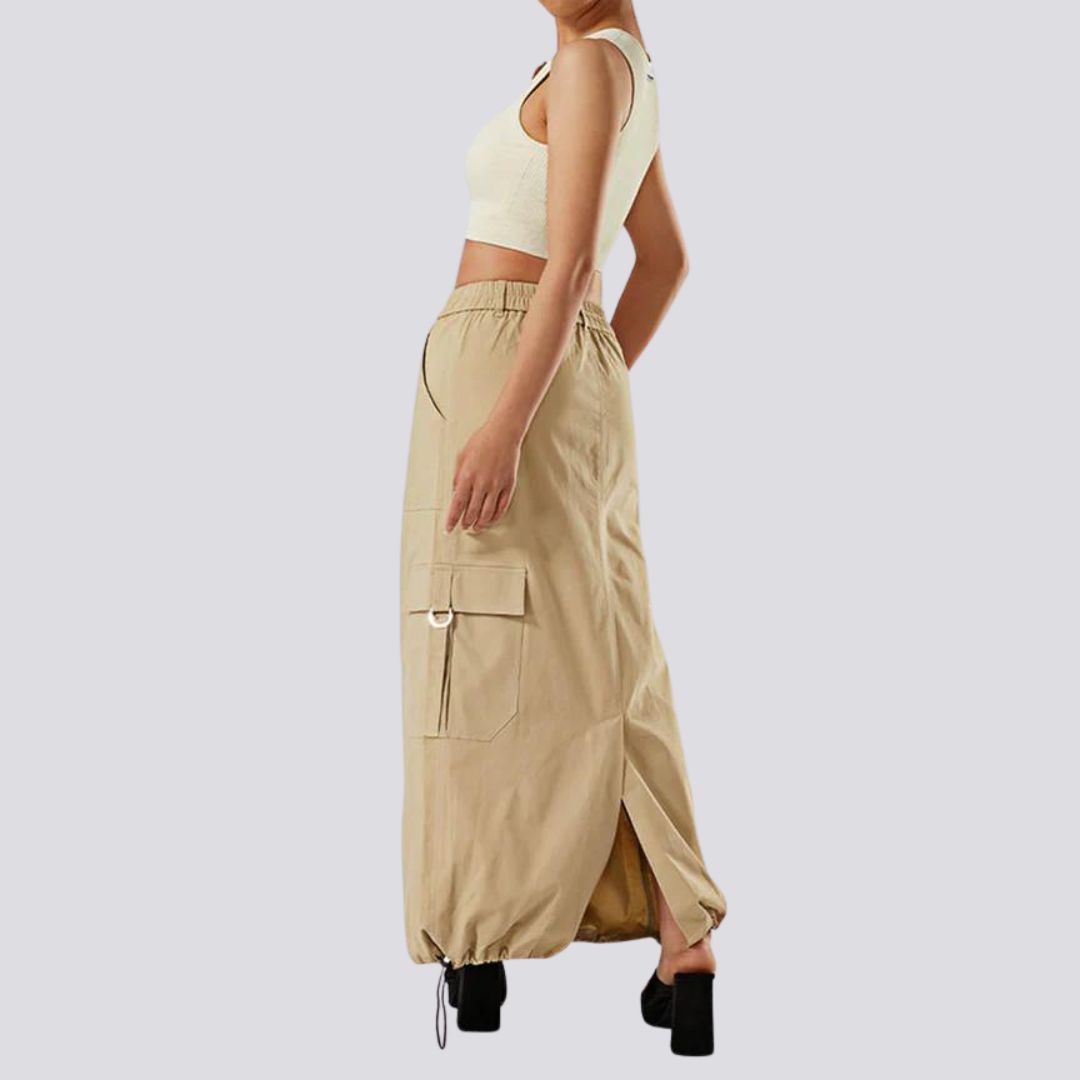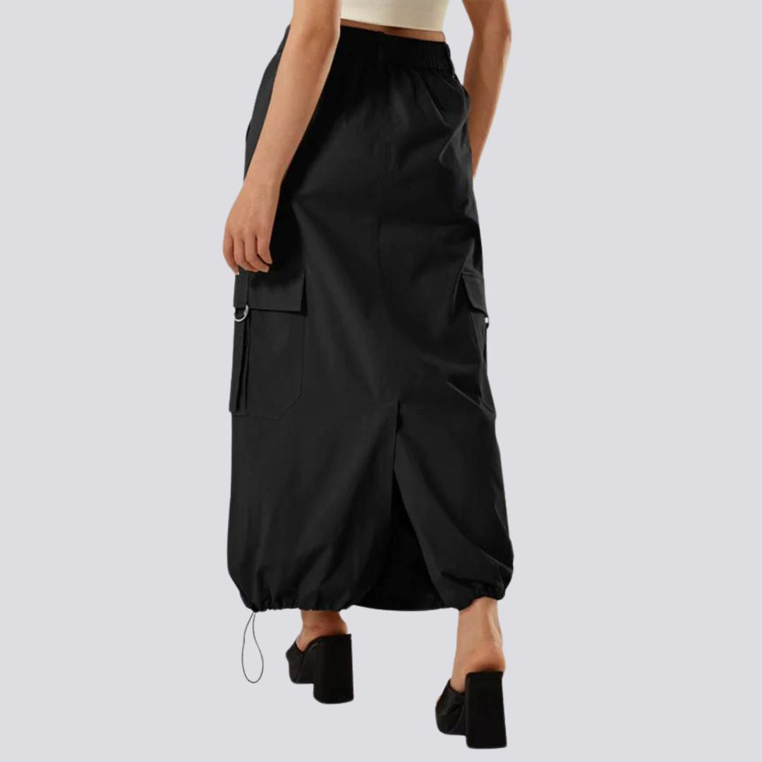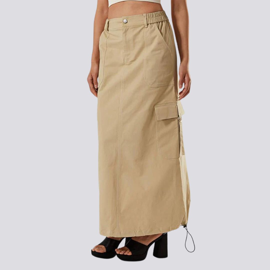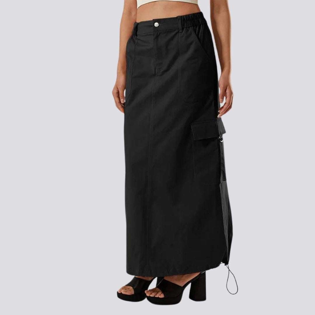 Enter the urban jungle with this Addison - casual cargo skirt with drawstring and flap pockets. Its flap pockets not only offer a practical advantage, but also a touch of athleisure chic. The drawstring waistband enhances comfort, while the cargo design elements lend a utilitarian yet fashionable vibe
