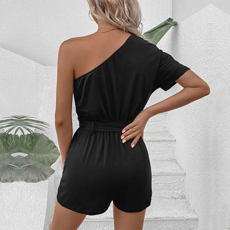Get ready to make a statement with Aliyah - a versatile women's jumpsuit that flatters your figure and enhances your style. With a comfortable elasticated waistband at the centre, a chic one-shoulder design and a waist band detail, this jumpsuit effortlessly combines fashion and functionality.