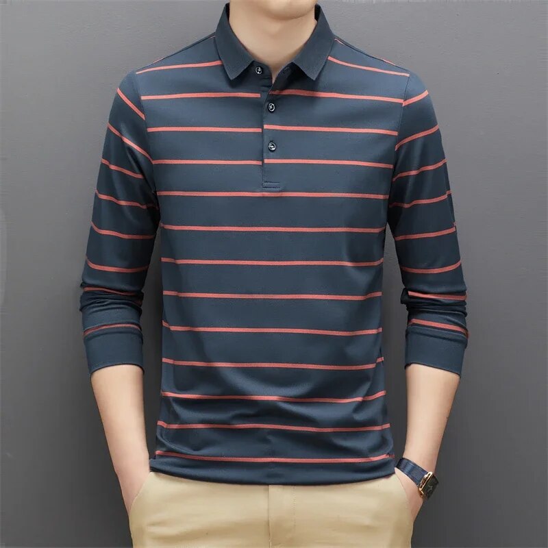 Discover the versatile style of our Alphonse Casual long-sleeved polo shirt for men. This fashion essential piece is perfect for an effortless yet groomed look during the spring and autumn seasons.