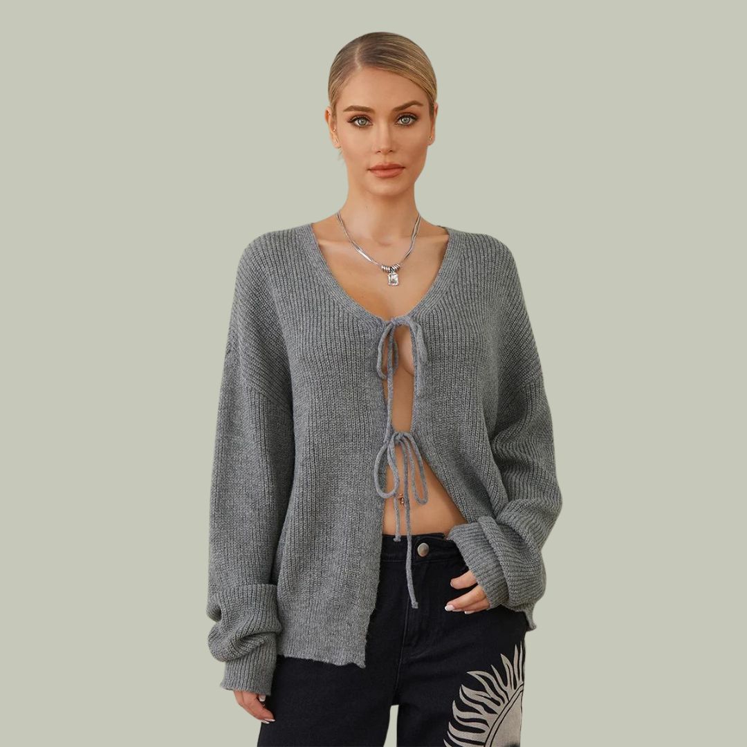 Add a casual touch to your look with this Alyssa cardigan with a drawstring at the front. The eye-catching design with a deep V-neckline and drawstring makes a fashion statement, while the dropped shoulders and wide sleeves ensure a comfortable fit. This jumper is a versatile must-have for any trend-conscious wardrobe.