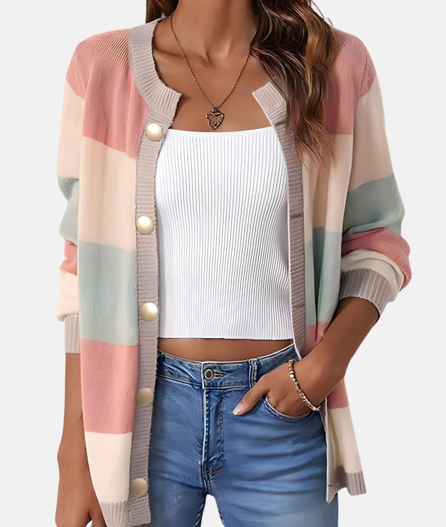 ✔ Vibrant Look: This colorful cardigan gives the outfit an eye-catching and vibrant expression and gives women the opportunity to show their style!