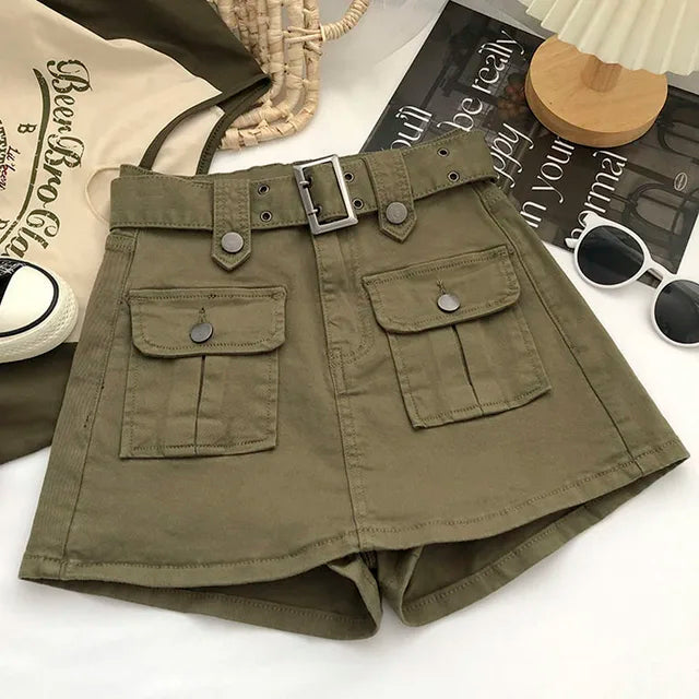 Enrich your wardrobe with our Aria - High Waisted Skort with Utility Pockets, a combination of fashionable design and practicality. This piece features a flattering high cut with a secure belt, combining the casual charm of cargo shorts with the elegance of a skirt. Its light khaki colour and utility pockets offer style and functionality at the same time, making it a versatile choice for adventurous days or stylish everyday wear.