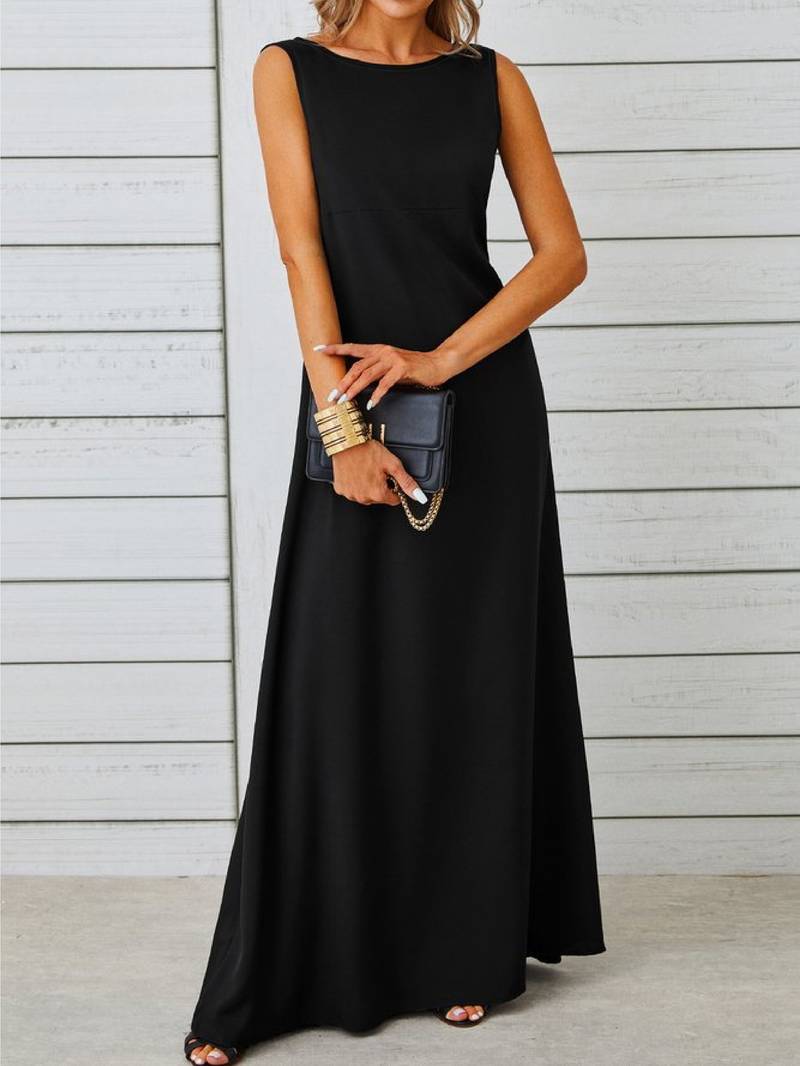 WHY SHOULD I CHOOSE THIS - Warda Simple Long Black Dress: