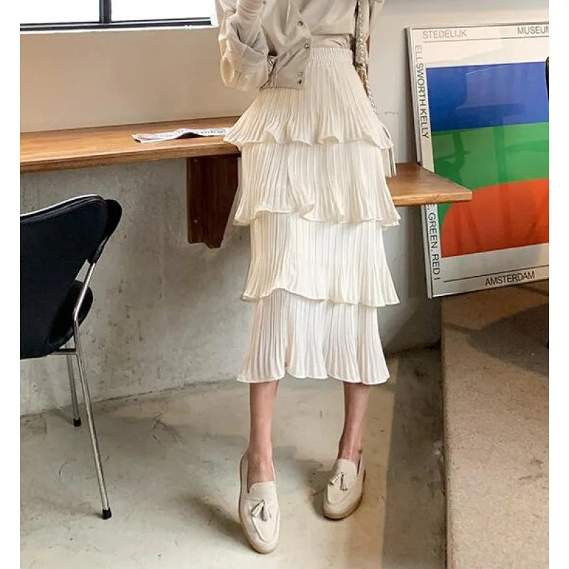 Discover the fascinating white summer skirt for a stylish time under the sun. This skirt impresses with its new Korean design and multi-layered flounces that add a playful touch to any outfit. Perfect for warm days, this skirt combines fashion and comfort. The airy cotton offers a cosy feel, while the elegant white design promises versatility and style.