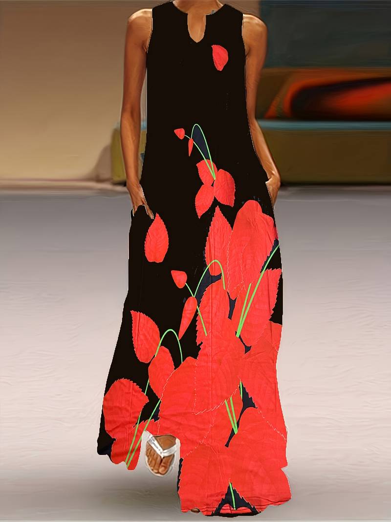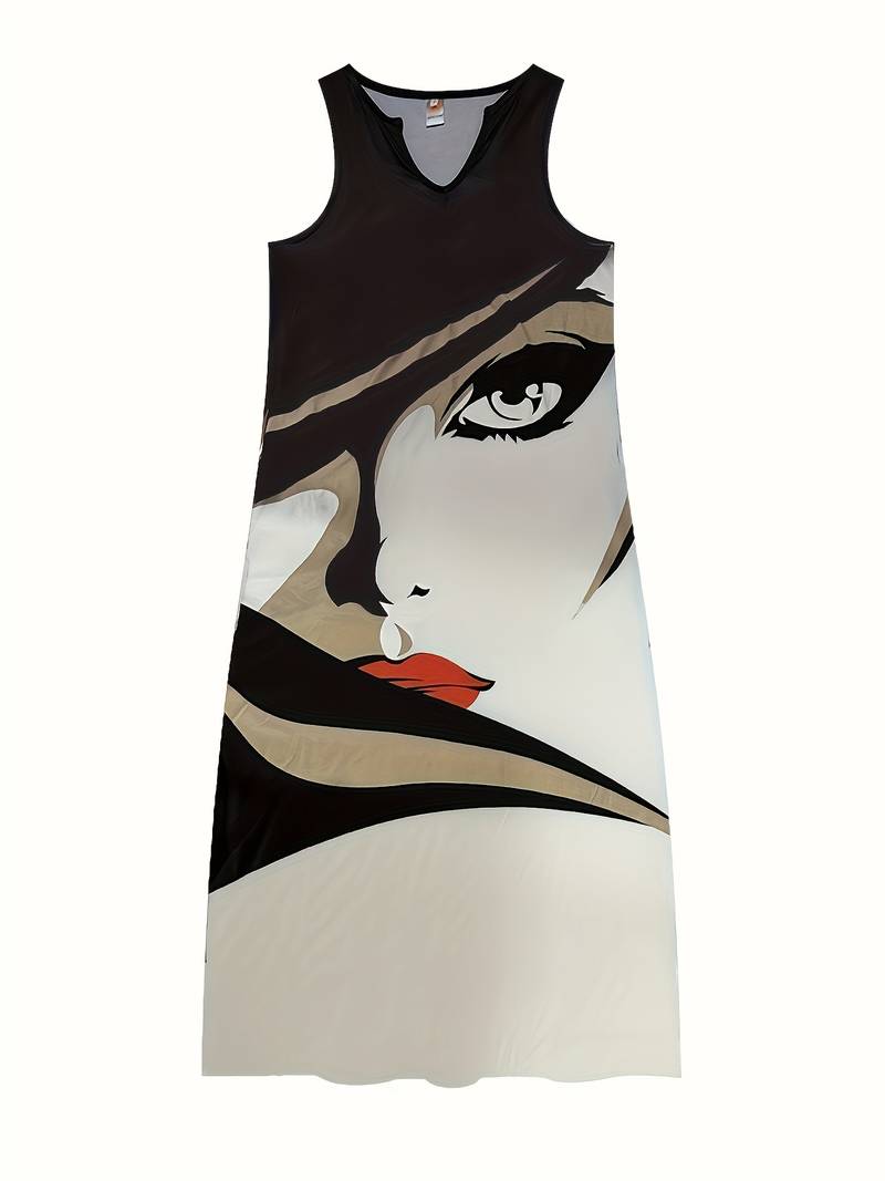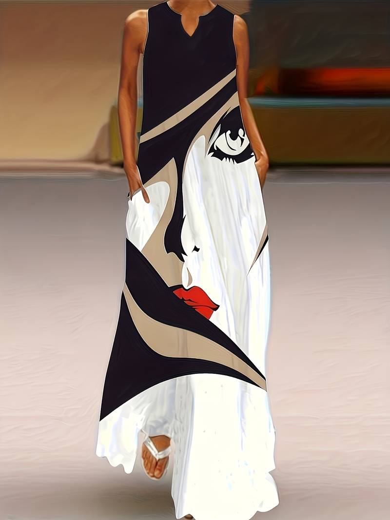 Zalika - Long dress with face print and notched neckline-Bondi Label