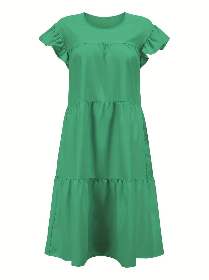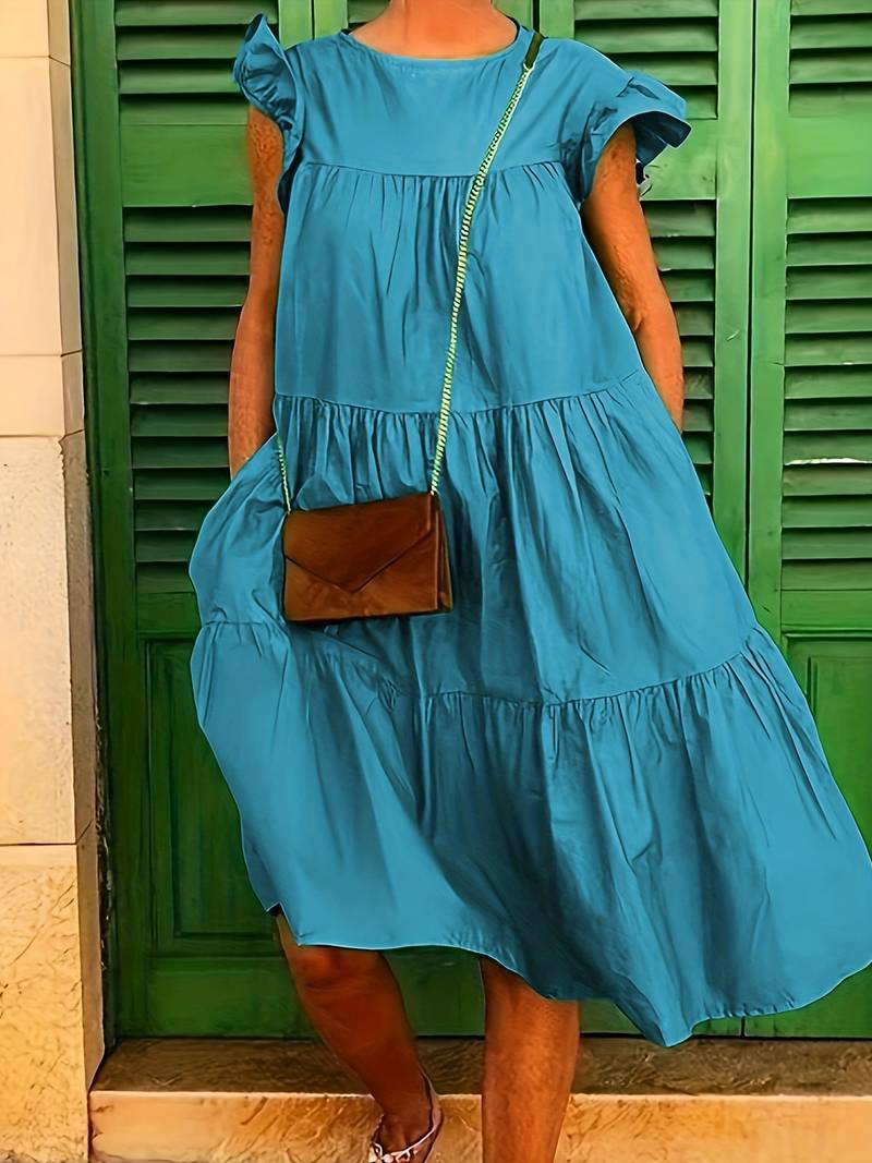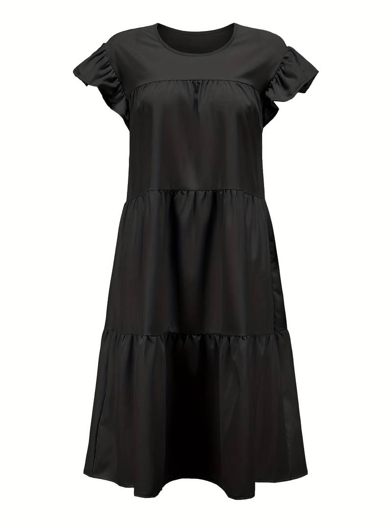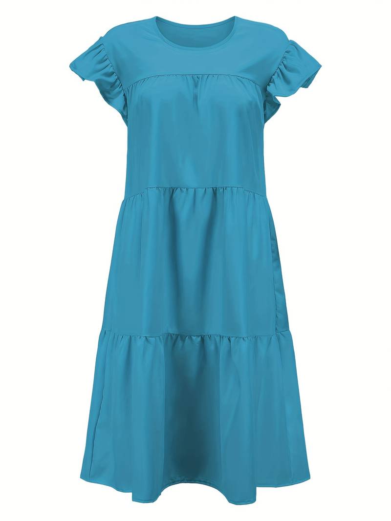 The Zaniyah dress has a classic round neckline and playful ruffles at the hem for a timeless and versatile outfit.