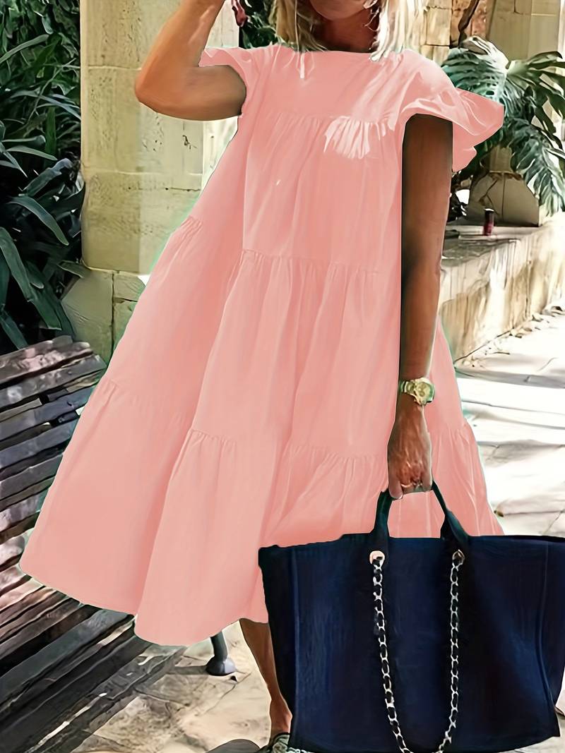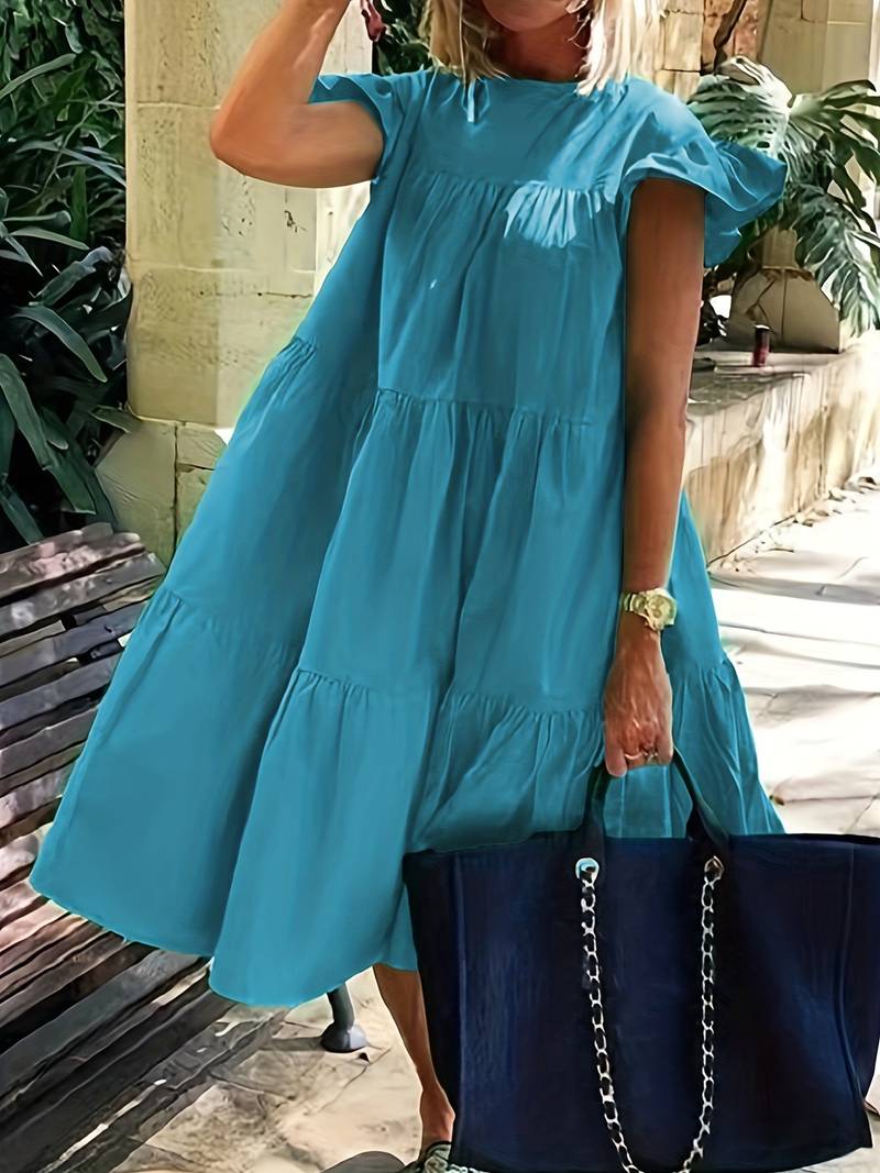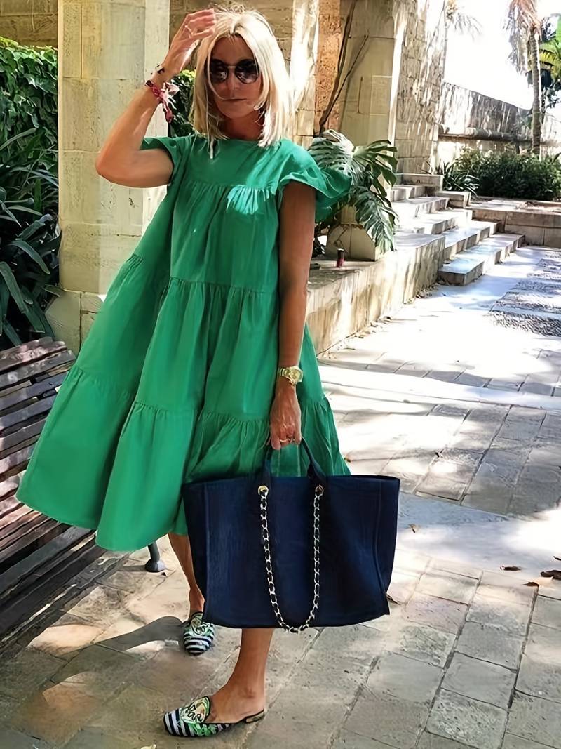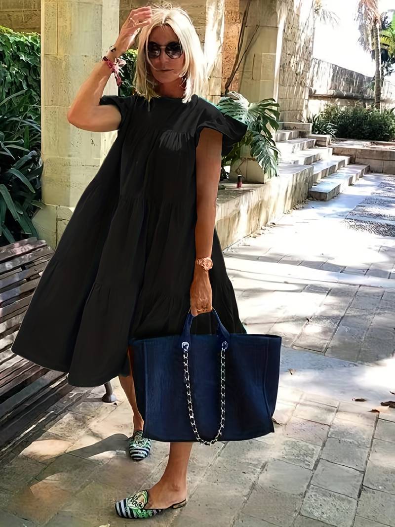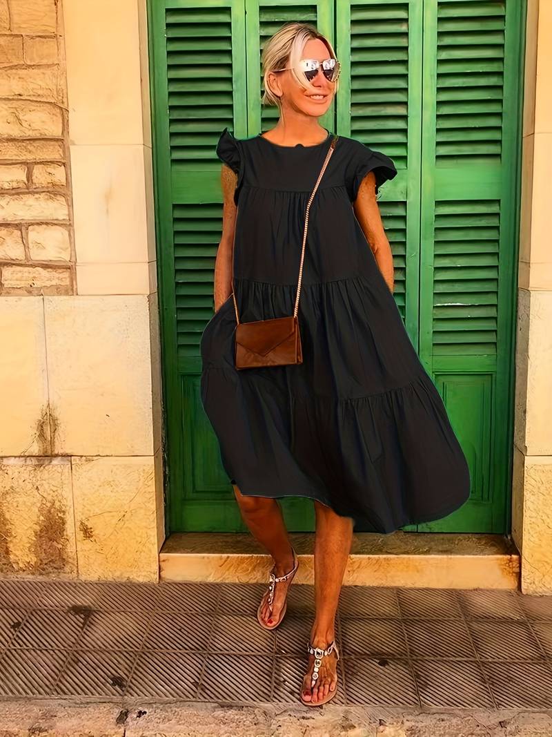 The Zaniyah dress has a classic round neckline and playful ruffles at the hem for a timeless and versatile outfit.