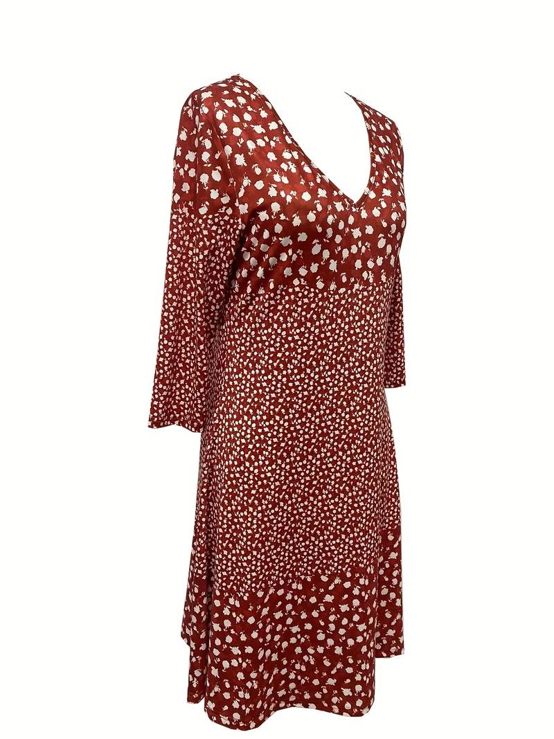 Zanna is a polka dot dress with a floral print and V-neckline that effortlessly combines vintage charm with modern elegance. The dress is printed with a playful, nostalgic polka dot floral pattern that adds a touch of playfulness. The V-neckline emphasises femininity and sophistication and creates a stylish silhouette that is suitable for a variety of occasions. For those who appreciate the timeless appeal of dots and flowers, Zanna promises a unique and eye-catching pattern that guarantees both versatility and comfort for a graceful and fashionable appearance.