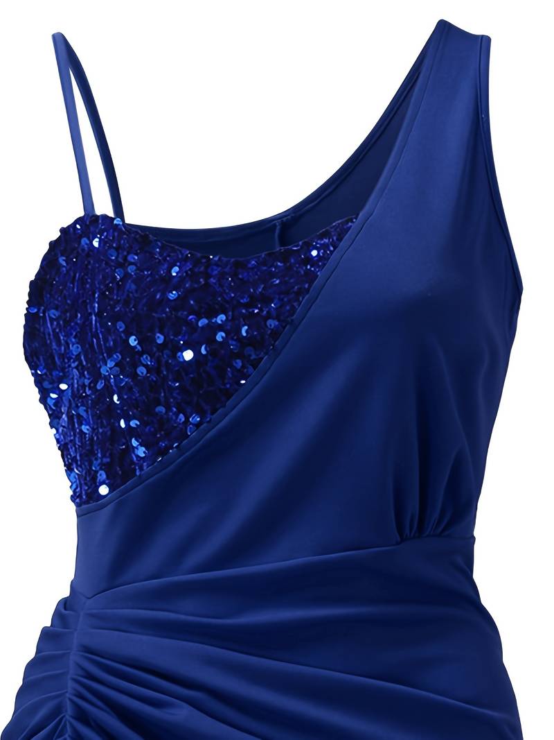 Zenith - Sequin spaghetti split dress is a glamorous ensemble with iridescent sequins that catch the light. Featuring a thigh-high slit for added sensuality, this dress has been carefully designed for those who want to make a statement at special occasions. The spaghetti straps add delicacy and create the perfect balance between toughness and sophistication. Elevate your evening wardrobe with Zenith, where every garment is all about glamour with sequins and chic seduction.