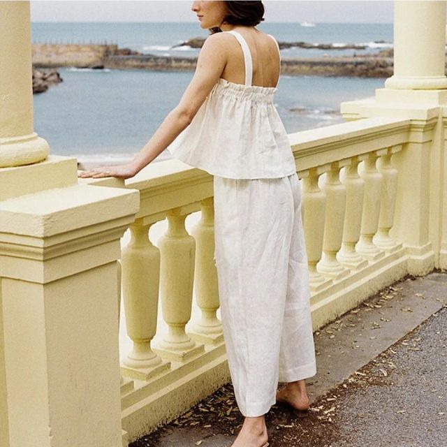Embody the essence of understated elegance with this Ziana - Two-piece linen outfit with ruffle detail. The clean lines and flowing silhouette of the outfit convey a sense of ease and sophistication, perfect for lovers of understated style. This versatile ensemble is perfect for a relaxed weekend brunch or a casual day at the office.